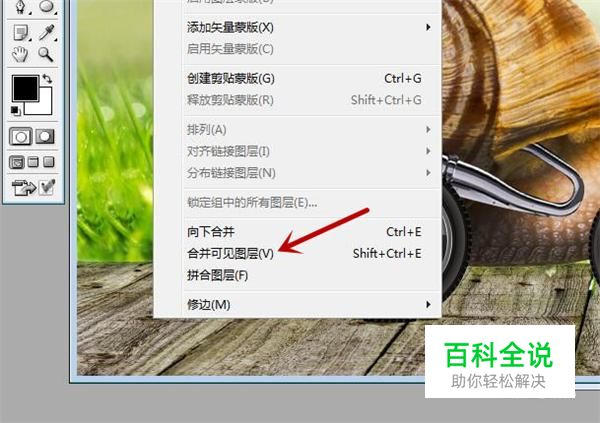 之后在选项卡中点击下方的合并可见图层,如图所示。