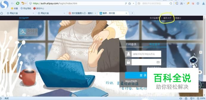 进入支付宝的登录入口首页,在首页中找到“服务大厅”,点击进入一下界面。