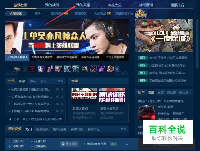 如果英雄联盟玩家想要看自己在游戏中拥有的皮肤,我们首先需要登陆腾讯游戏管家,并且选择自己想要查询的大区角色,在上方选择“我的英雄”。