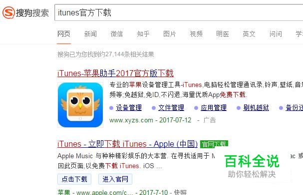 搜狗搜索itunes官方助手,并下载安装。