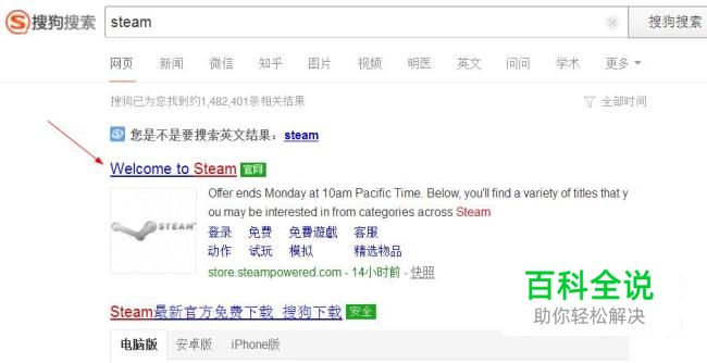 首先使用搜狗搜索STEAM,进入第一个官方主页