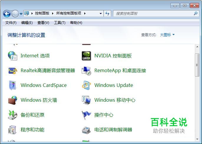 进入控制面板界面,在大图标查看方式下,点击“Internet选项”