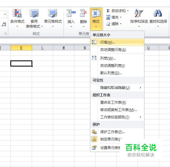 点击“格式”,找到“行高”,点击
