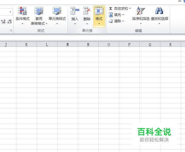 打开Excel,在“开始”中找到“单元格”选项卡中的“格式”