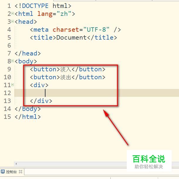 如图,先在HTML页面中书写如下代码,进行页面布局。这里我是布局为两个按钮和一个div。