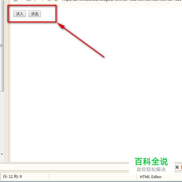 接着我们预览看看效果,可以看到有“淡入”和“淡出”两个按钮。而div因为我没有设置样式,所以和页面颜色一致,看不出效果。
