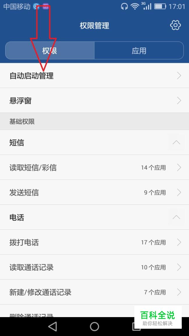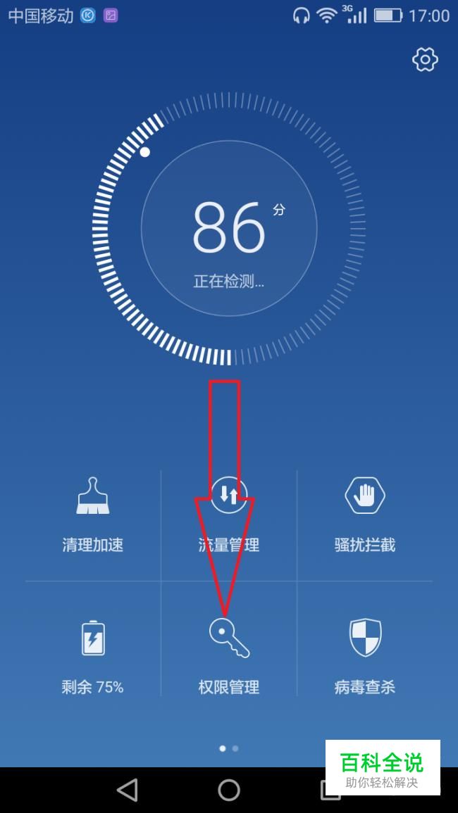 要使用QQ的计步功能,就得先将手机的开机自启动功能打开,这样在我们退出QQ后也可以计步。进入手机管家,点击权限管理