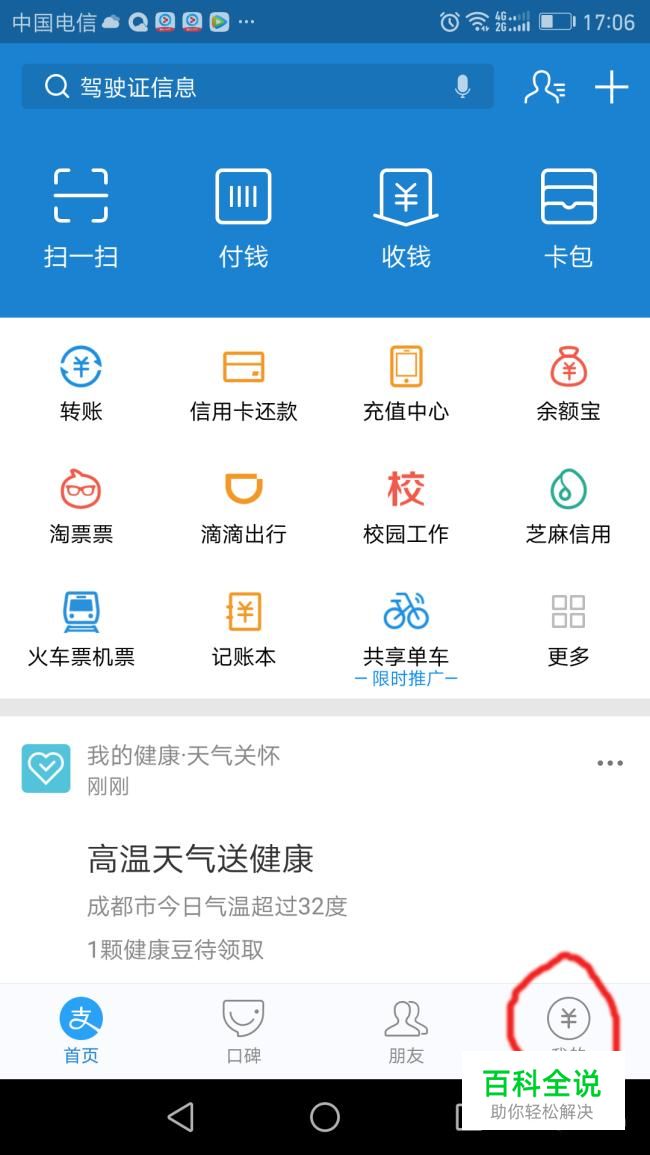 给支付宝充值首先要绑定银行卡,如果没有绑定银行卡的话,可以在“我的”这个界面找到银行卡,然后点击进入。