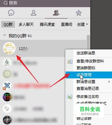 在群列表里,鼠标右击QQ群名称,点击成员管理。