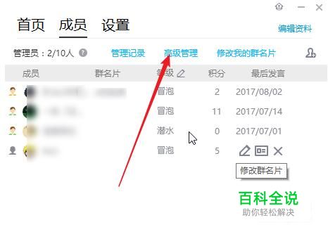 进入到成员管理界面,点击高级管理。