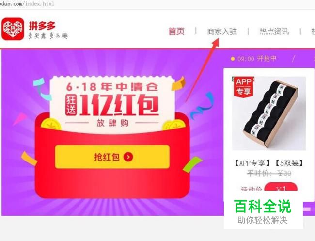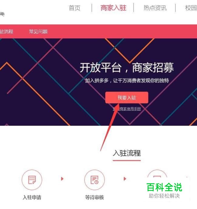 进去拼多多官方网站,在上方找到商家入驻。