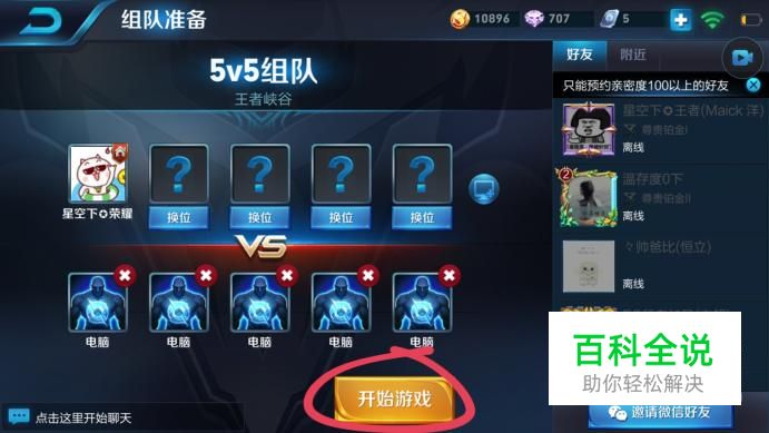 在出现的画面里,有我方跟对手的位置,点击对手位置右边的【添加电脑】,添加五个。