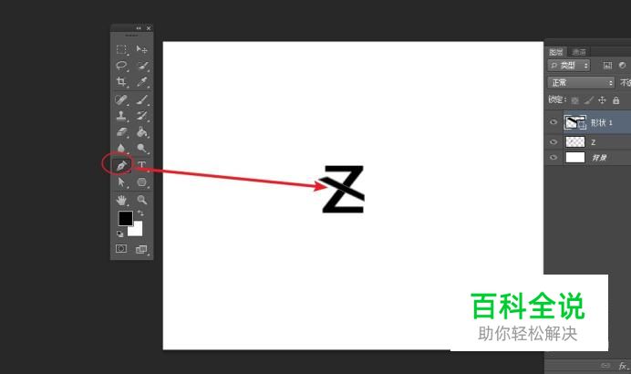 输入字母Z字,并缩放字母的大小。(自由变换工具)