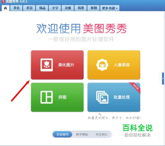 打开美图秀秀,点击“美化图片”,然后点击“打开一张图片”打开一张含有要被合成军装照的人的照片。