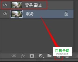 先用PS打开我们想要做处理的图片,打开后选中背景层,拖动至“新建图形按钮”上,然后我们如图所示复制出背景副本。