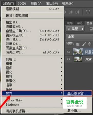 然后点击“滤镜”—“其他”—“高反差保留”。