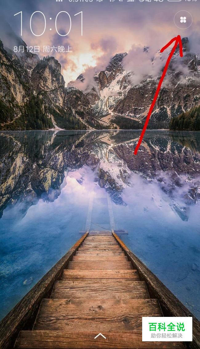 这时可以看到在锁屏界面的右上位置有一个四叶草图形,点击即可进入画报。