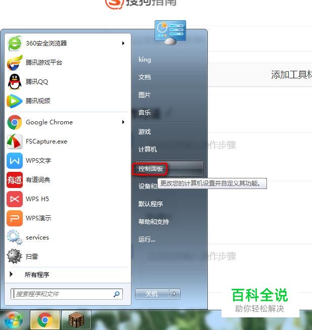 点击“开始”或者按“Windows”找到“控制版面”点击进入