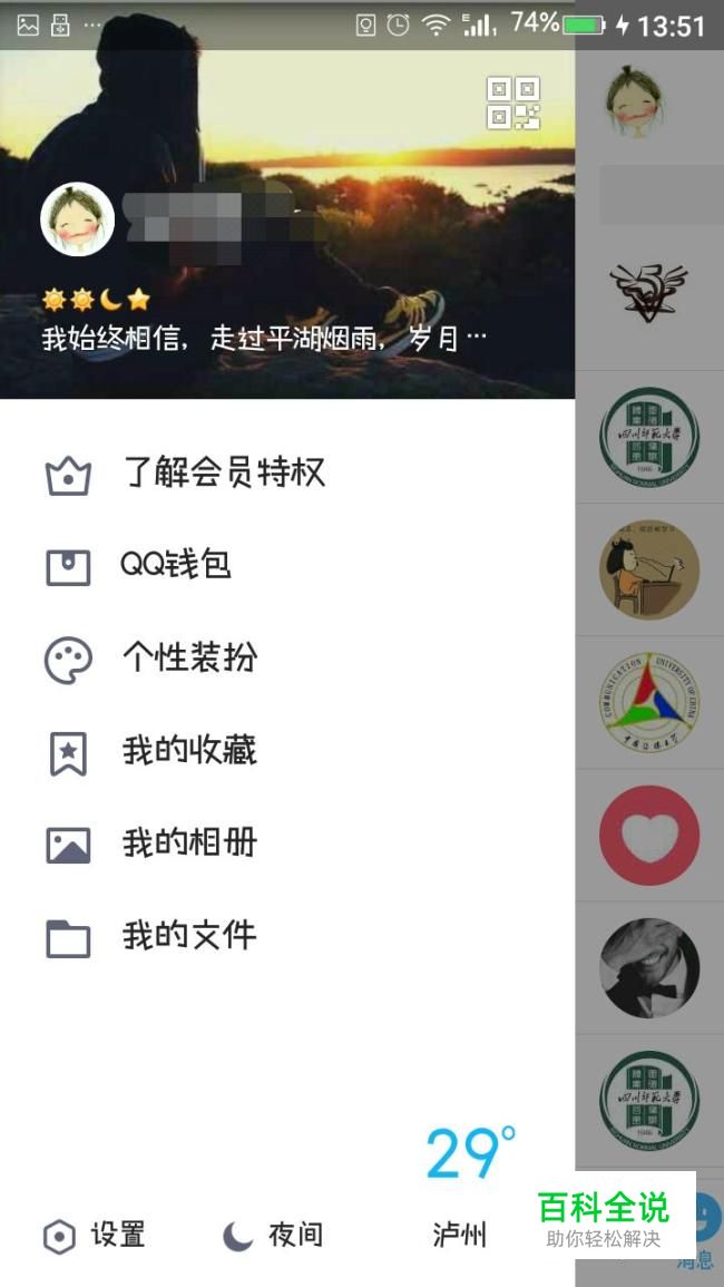 进入QQ界面,点击自己的头像,即会出现如下图的界面。