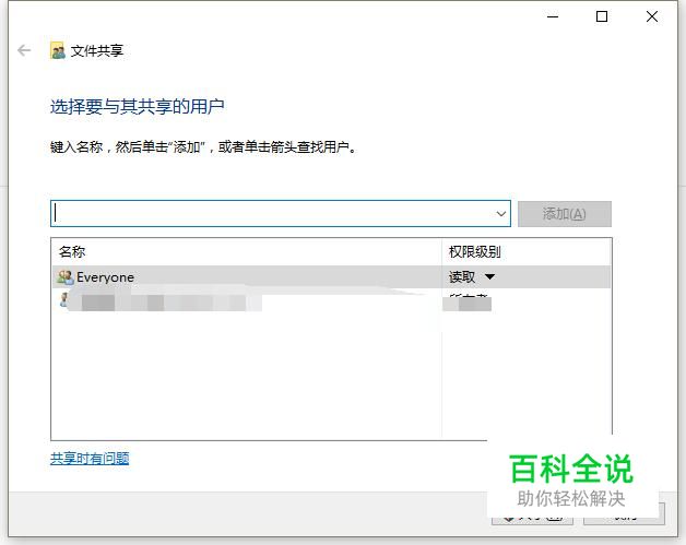 之后,就会显示出可以共享的用户,还可以创建新用户。小编这里选择“Everyone”。