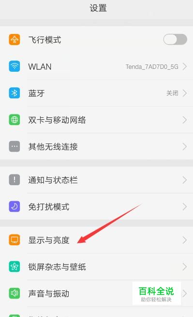 设置页面点击“显示与亮度”