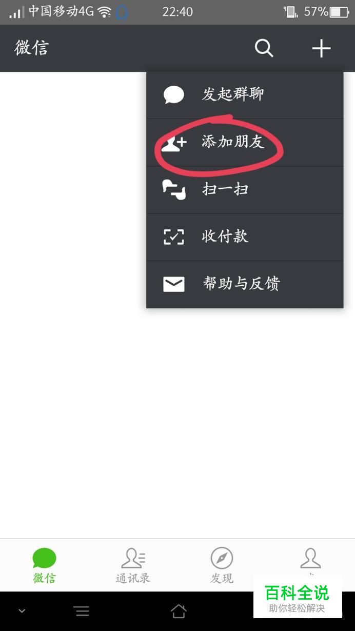 首先,大家先来看一下正常情况下的添加手机号,进入微信后,点击上方加号,再点击【添加朋友】。