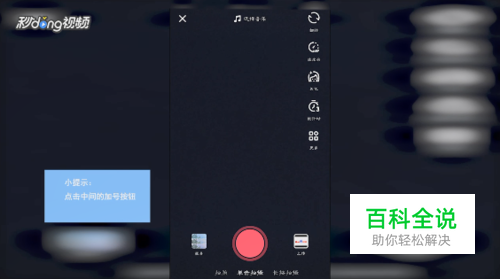 打开抖音短视频app,点击中间的加号按钮。
