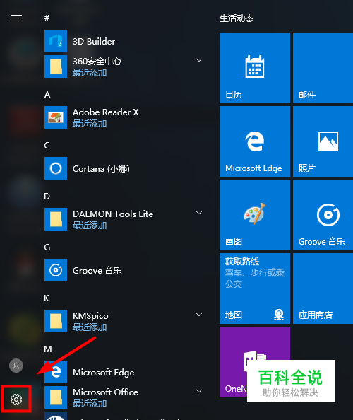 打开开始菜单,点击设置,如图所示