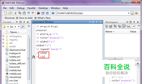 打开MATLAB软件,如图所示,这里有自己以前执行过的命令; 对指令的界面进行清空,代码如下; clear clc