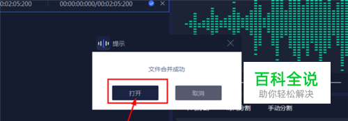 当音频剪切完成以后,界面上会弹出一个对话框,我们点击上面显示的“打开”选项即可找到我们剪切完成的音频文件了。