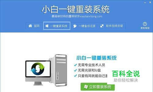 第一步、登录小白系统官网下载打开小白一键重装系统工具,出现小白软件主界面,点击“立即重装系统”进入下一步