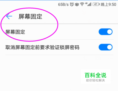 在这款手机【屏幕固定】页,我们看到它是默认关闭的,如图。
