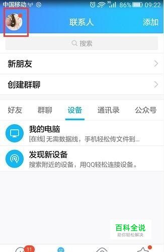 手机登录QQ,点左上角头像