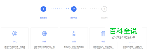 然后选择你需要的类型,个人、媒体、企业、政府还是其他机构,然后就可以直接下一步了。