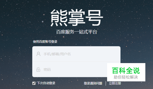 首先百度搜索熊掌号,进入官网,然后用百度账号登入。