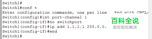 进入SWITCH1配置交换 switch1#conf tswitch1(config)#int port-channel 1 进逻辑通道1 switch1(config-if)#no switchport 定义为三层接口(默认是二层口) switch1(config-if)#ip address 1.1.1.1 255.0.0.0 添加通道IP switch1(config-if)#end switch1#conf t Switch1(config)#int range f0/1 -2 进入接口f0/1-2switch1(config-if-range)#no ip address 去掉接口IPswitch1(config-if-range)#channel-group 1 mode on