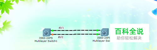 先选2个3560交换机,用交叉线连接起来,我们选择f0/1和f0/2口