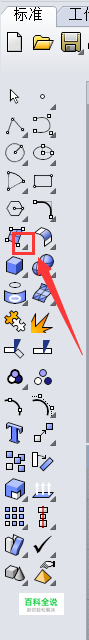 双轨扫略和单轨扫略差不多,找到我在下图1中箭头所指向的图标,点击图标下方的小三角形。而后它会弹出如下图2所示的窗口,找到我在图2中框选出来的“双轨扫略”的图标,左键单击。
