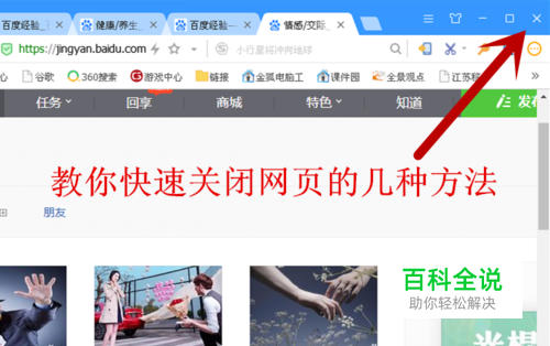 在我们使用网页时,有时打开的网页是非常多的,如果一个个地关闭,相当麻烦;其实,我们可以学习一些快速关闭网页的方法,这样能提高效率。今天,小编教你快速关闭网页的几种方法: