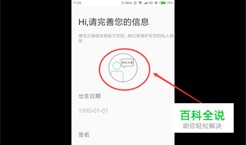 . 我们设置好出生日期之后,我们点击上面的‘头像 ’设置按钮 。 .
