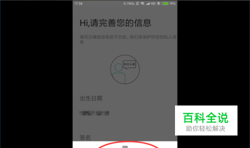 . 接着,我们返回到个人基本信息的页面,我们顺便填写好自己的个性签名,这个可以让别人有助于了解你,我们填写好签名之后,点击‘完成 ’按钮 。 .