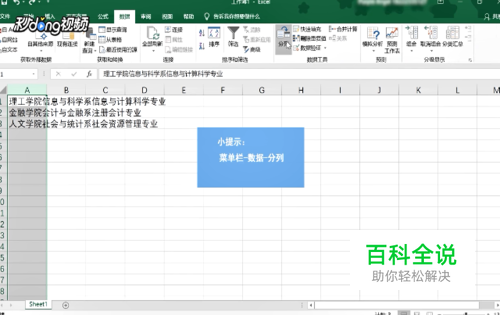 打开表格,选定要拆分的内容,在菜单里找到“数据”选项卡。