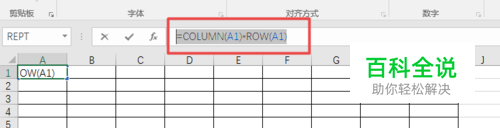 然后在A1单元格中输入“=COLUMN(A1)*ROW(A1)”,也就是第一行第一列,相当于列号乘行号。