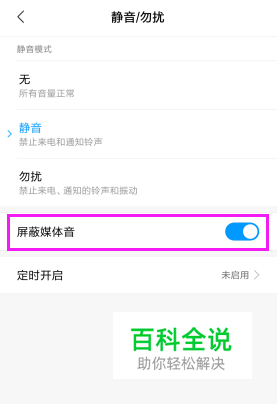 点击【屏蔽媒体音】。未屏蔽下,按钮是灰色的,且点到视频等手机就会发出声音。