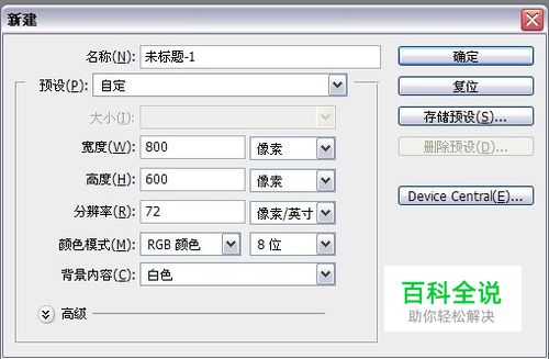 新建一个文件,宽度为800,高度为600,你也可以自己设定,不一定大小要跟我的一样。