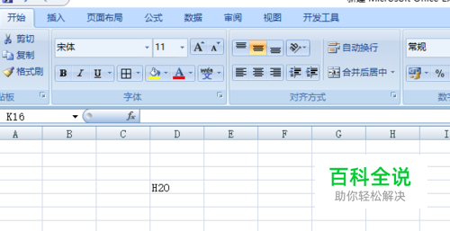 比如我们要输入水的化学分子式,首先打开excel,输入H2O。