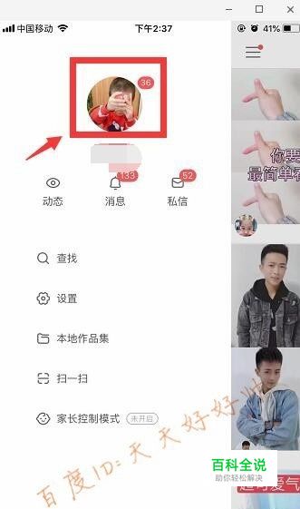 点击快手的个人头像。