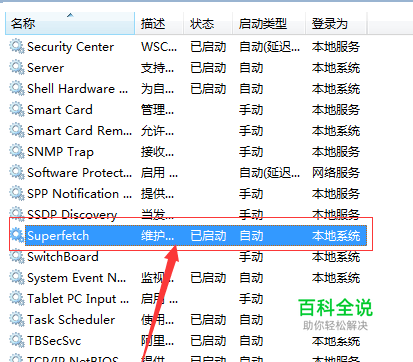 Windows8/Windows 8.1/WIN7的SuperFetch超级预读服务主要是为企业应用与大型协作软件而设计的,个人用户没有必要开启。大型企业使用的企业策略管理等专业软件,数据库启动过程往往会长达10分钟之久,而运用SuperFetch超级预读服务可将启动时间降低到6分钟以内。但对我们这些个人用户而言,平时使用的软件启动时间非常短,通常在1-2秒内,SuperFetch超级预读服务即或提速也只有0.2-0.5秒,这点时间我们一般可以忽略,而开启服务的话,只会加大对硬盘的监测(损失CPU性能时间)与读取时间(增加硬盘IO寻址线程分配),这也是大家抱怨硬盘占用大的根本原因。 这个家伙就在这里,看图