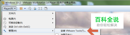 让VMware Workstation虚拟机中的系统时间和主机同步需要给虚拟机安装VMwareTools软件,可以在虚拟机处于开机状态时,点击【player】菜单中的【管理--安装VMwareTools】进行安装(安装时间可能较长)。