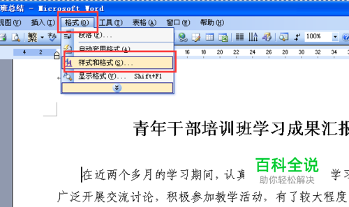 打开一篇已经编辑的文档,点击菜单格中的“格式”按钮,单击“格式和样式”选项。
